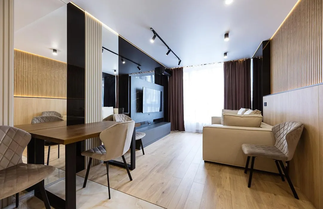 В номерах отеля Nyvky Like Home - Файна Таун із сезонним басейном - Кв 175 низький поверх есть гладильные принадлежности и система климат-контроля, а также кофеварка. Приятные штрихи включают в себя отдельный туалет и душ.